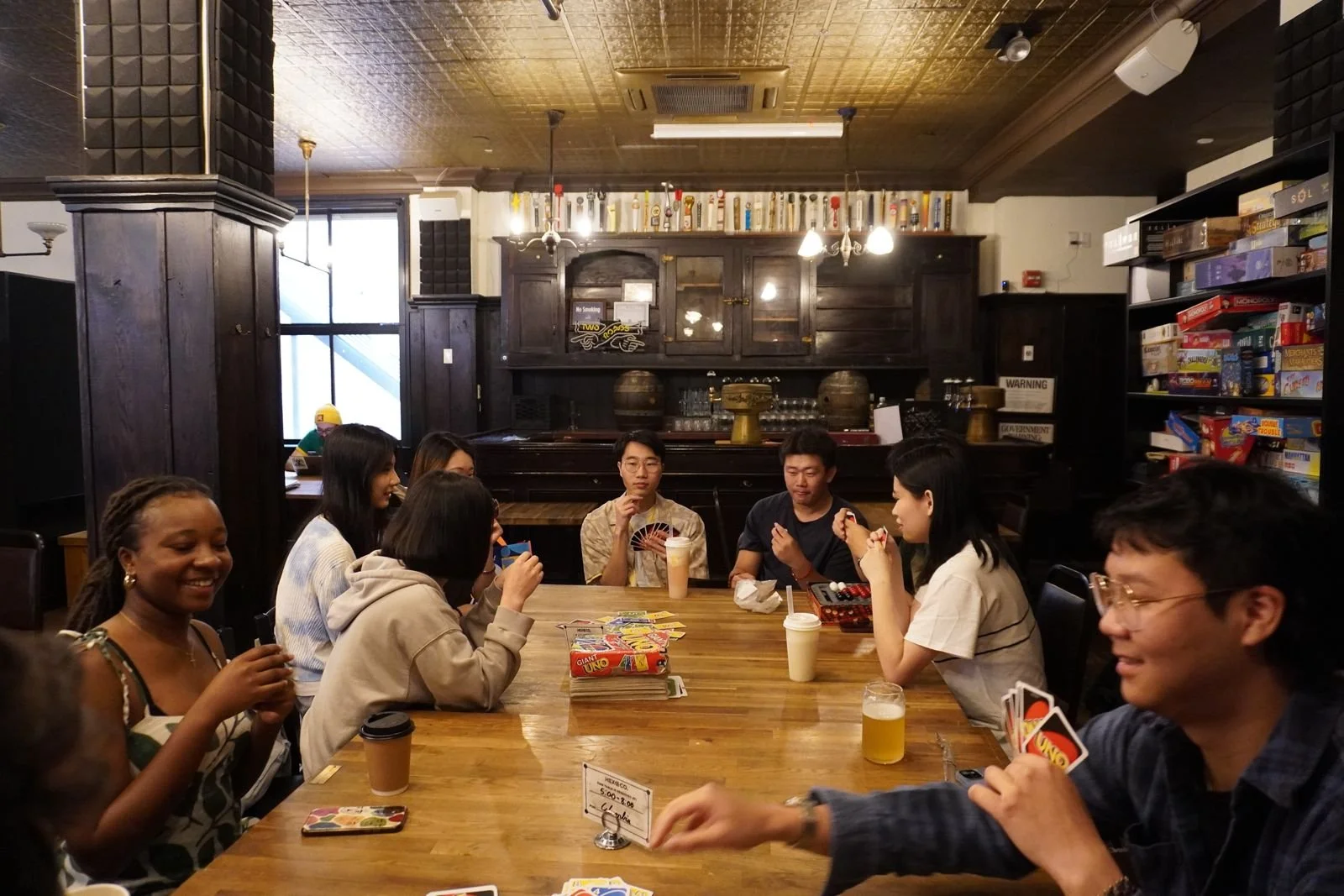 At Manhattan’s largest board-game café, we took over tables with Fishbowl, Rummikub, Uno, etc. and laughter filled the café (so much for the ‘quiet actuary’ myth). There were victorious shouts, dramatic groans, and the kind of laughter that travels. People who had only waved in lecture became teammates, rivals, and then friends. Someone learned Rummikub for the first time and immediately became weirdly good at it (we’re still running credibility on that). And for a few hours, deadlines stepped aside while the community took the lead.